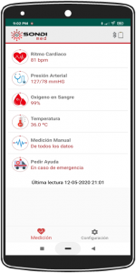 Sondimed en la solución que permite cuidar lo más valioso, su salud. Este servicio está diseñado para hacer seguimiento de su salud basado en los 4 signos vitales más relevantes: temperatura corporal, oxigenación en la sangre, ritmo cardíaco y presión arterial.